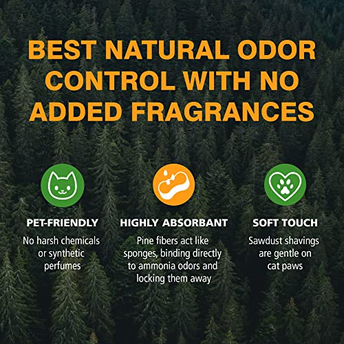 • HIGHLY ABSORBENT PINE LOCKS AWAY ODORS. The pine shavings in this lightweight non-clumping cat litter directly bind to odors like thousands of tiny sponges to soak up liquid and lock away ammonia odors to keep the litter box fresh and dry.