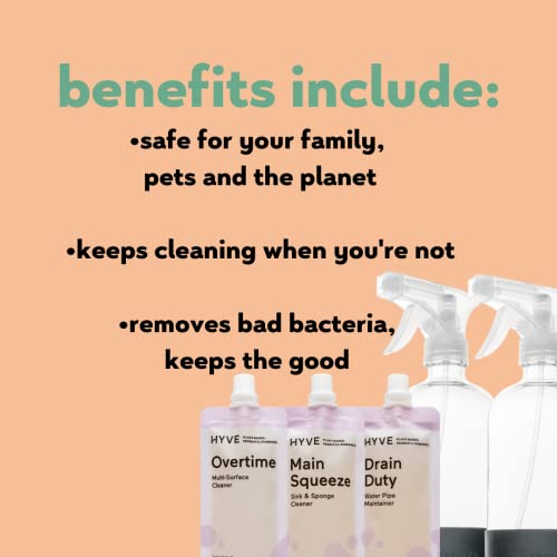 - SAFE FOR FAMILIES, KIDS, BABIES, PETS AND THE PLANET – Hyve natural all-purpose cleaner spray is free of sulfates, phosphates, ammonia, caustics, other harsh chemicals, synthetic dyes and scents, 100 percent cruelty-free