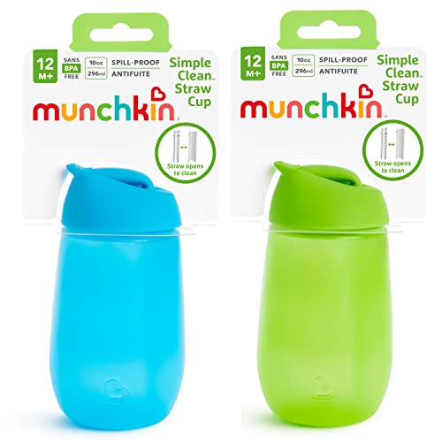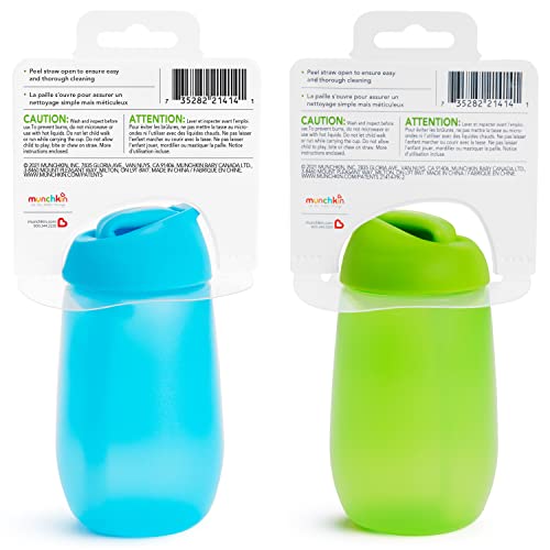 Munchkin® Simple Clean™ Toddler Straw Cup, 10 Ounce, 2 Count (Pack of 1), Blue/Green