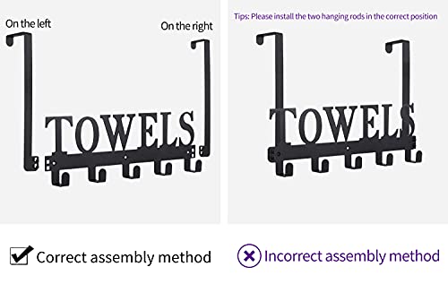 1.Assemble the towel racks and hang them on the door, making sure there is enough space above the door to fit a coin (about 1.5 mm). In addition, doors should be between 1.4-1.7 inches (3.5-4.5 cm) thick. Please check the product size before purchasing.