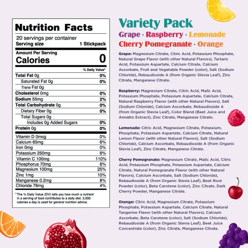 - NATURAL TASTE WITHOUT THE SUGAR: Adding electrolyte powder provides enhanced hydration without the sugar, carbs, and calories. Naturally sweetened with organic stevia leaf and infused with real fruit flavors. Contains important minerals like Magnesium, Calcium, and Potassium. Plant based flavors and colors- Vegan, gluten free, caffeine free, soy/dairy free, keto friendly, paleo-friendly, Non-GMO. We don’t use any artificial sweeteners like erythritol, sucralose, saccharin, or aspartame.