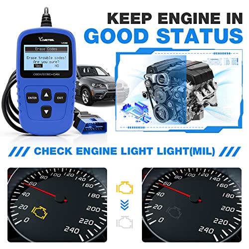 - 🚗【KEEP ENGINE IN GOOD STATUS】- VDIAGTOOL check engine code reader brings a fast access to scan, read the car fault code, show its definition on the screen instantly, troubleshooting to find the root causes of problems, erase the engine fault code and turn off the MIL (Malfunction Indicator Light).