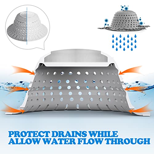 - Suitable for Various Wet Scenarios — A must-have bathtub drain protector for bathrooms, bathtubs, showers, laundry and sinks. No need to use tools to install. Easy to use and clean with practical design and premium silicone material. Just restore the folded to dome before using.